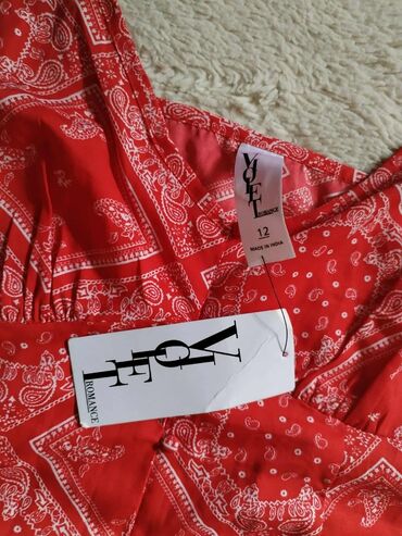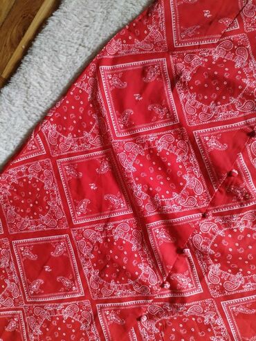 - Dizajn: bandana/paiseley print u crveno‑beloj kombinaciji