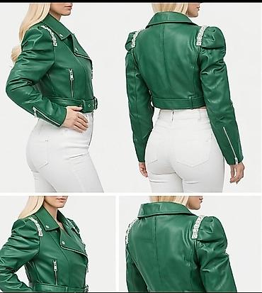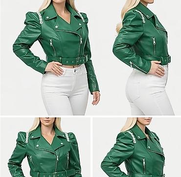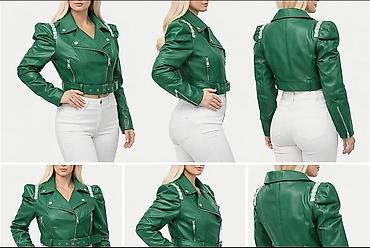Zelena ženska biker jakna – kratki kroj - Materijal: eko koža