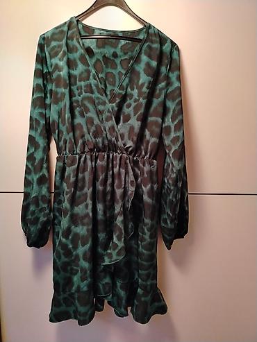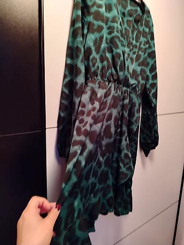 Zelena mini haljina sa animal printom (leopard), lepršava i ženstvena.