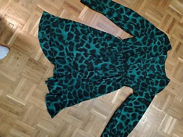 - Boje i dezen: smaragdno zelena sa tamnim leopard šarama, efektan i pogodan za dnevne i večernje kombinacije.
