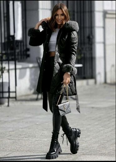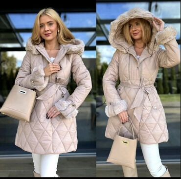 Zimska ženska jakna/kaput sa kapuljačom i veštačkim krznom. Detalji: - Duži kroj (ispod kukova), pruža dobru zaštitu od hladnoće i vetra - Topla, prošivena punjenjem; dekorativni štep uz geometrij...