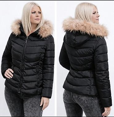 - Kapuljača: fiksna, sa bogatim bež/karamel veštačkim krznom oko ivice