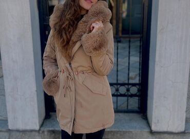 Ženska zimska parka kaput – bež/boja šampanjca - Topao, raskošan krzneni detalj: široka krznena bordura duž kapuljače i ivica prednjeg dela, kao i bogate krznene manžetne. - Dužina do sredine buti...