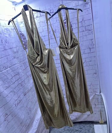 🔥Zlatna večernja haljina – duga, uska silueta sa sjajnim metalik efektom po top ceni 1900 din