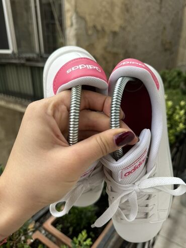 - Boja: bela osnova, ružičasti detalji na jeziku i peti (adidas logotip)