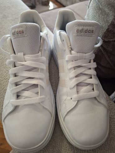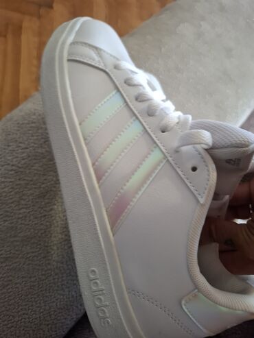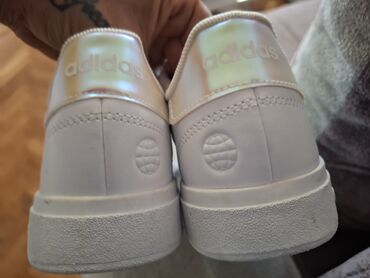 Adidas patike za trčanje i svakodnevno nošenje UG 25.5 - Model: Adidas (loga na jeziku i bočno, tri pruge sa strane) - Boja: svetlosiva/bele nijanse sa diskretnim metalik detaljima - Gornjište: pr...1 000 RSD
