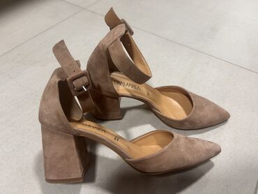 Elegantne ženske salonke na štiklu - Model: L-8814 - Boja: bež - Veličina: 37 - Materijal gornjišta: brušena koža/velur izgled - Oblik: špic - Visina potpetice: visoka tanka štikla - Kaiševi: ukrš...2 000 RSD