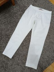 Ženske pantalone u M veličini - Model: visoki struk sa klasičnim šlicem i dugmetom spreda - Kroj: širina od kolena naniže (blago zvonaste), izdužuju nogu i lepo padaju preko obuće - Materijal: gla...