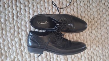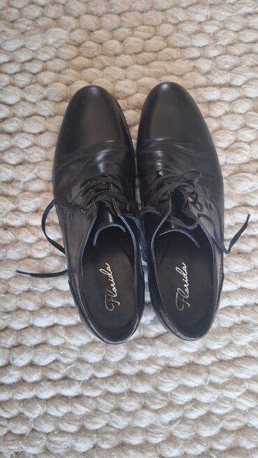 Muške cipele u crnoj boji, sa pertlama za vezivanje. Samo su jednom nošene na maturi, kao nove su. Ove cipele imaju elegantan, zaobljeni vrh i vidljive šavove koji doprinose klasičnom izgledu. Glatka površina i diskretan sjaj čine ih pogodnim za različite prilike, od poslovnih do svečanih. Stabilan đon obezbeđuje udobnost tokom nošenja.