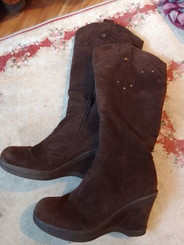 Kožne ženske čizme do kolena – konjak braon br 39 naznačeno - Materijal: prirodna koža spolja, verovatno kožna ili kvalitetna sintetička podloga; čvrst gumeni/ders plitki đon - Visina: do kolena, ...