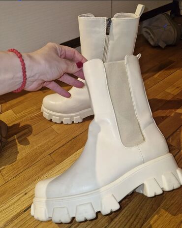 Druga vrstaŽenske čizme – krem/bela boja, masivni „chunky“ đon
