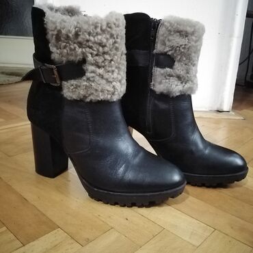 Ženske zimske čizme/gležnjače sa krznom i ukrasnim biserima br 48 i 40 - Materijal: mekani antilop u svetlo-braon nijansi - Unutrašnjost: toplo veštačko krzno u beloj boji, obezbeđuje udobnost i i...