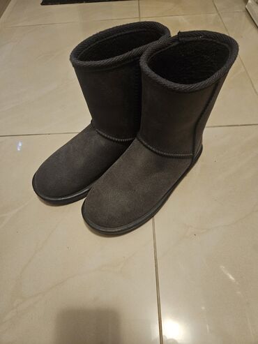 Više pari obuće – detaljan opis: - Massimo Dutti ženske zimske čizme, bež/nude boja, mekana napa koža sa prošivenim panelima, vezivanje elastičnim pertlama sa metalnim završecima, deblji gumeni đo...