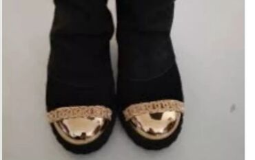 Drugi brendCrne ženske čizme do kolena sa skrivenom punom petom. Gornjište od mekog materijala nalik brušenoj koži u jednobojnoj crnoj boji. Prednji deo je naglašen zlatnim metalnim kapicom i dekorativnim lančićem iznad prstiju, što daje elegantan, glamurozan izgled. Skriveni wedge đon pruža dodatnu visinu uz stabilnost i udobnost pri hodu. Gumeni đon sa blagim profilom za bolje prianjanje. Klasična, čista silueta bez pertlanja ili kopči – lako obuvanje. Pogodne za dnevne i večernje kombinacije, uz haljine, suknje ili uske farmerke. Idealne za hladnije dane kada želite kombinovati toplinu i stil.