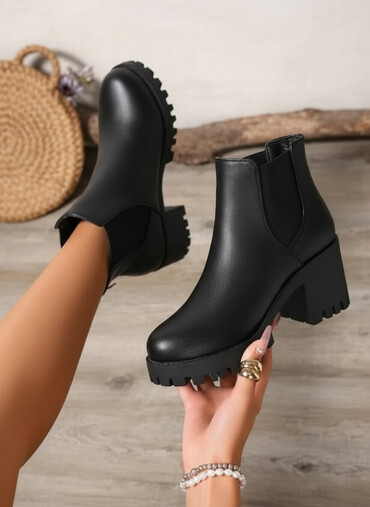 ZimskaŽenske crne gležnjače sa platformom i blok petom.