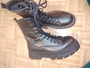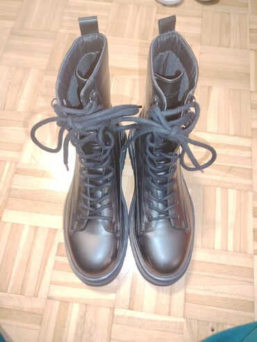 - Model: visoke vezane čizme (vezice kroz metalne rupice do vrha, jezičak i petlja za lakše obuvanje)