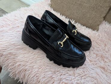 Ženske mokasine – crne, sa robusnim đonom i dekorativnim zlatnim lancem na gornjištu. - Klasičan loafer dizajn sa zaobljenim vrhom - Istaknuti ukrasni lanac u zlatnoj boji za elegantan akcenat - D...1 500 RSD