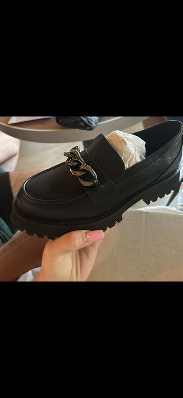 Ženske mokasine – crne, sa robusnim đonom i dekorativnim zlatnim lancem na gornjištu. - Klasičan loafer dizajn sa zaobljenim vrhom - Istaknuti ukrasni lanac u zlatnoj boji za elegantan akcenat - D...1 500 RSD