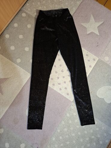 Crne šljokičaste helanke - Brend: Amadeus - Materijal: elastična tkanina sa ušivenim sitnim metaliziranim nitima za sjajan efekat; glatka postava iznutra za udobnost - Kroj: uske, punu dužinu - St...