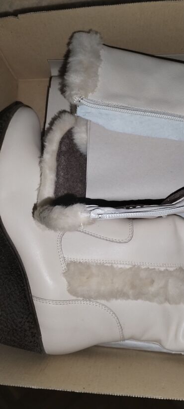 O trošku kupcaŽenske duboke čizme, nove, 38 broj. Nisu nošene, na drugoj slici se vidi karton unutra. Bela boja. Imaju krzno i malu potpeticu.