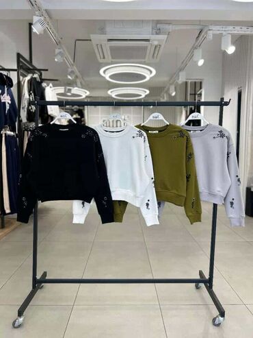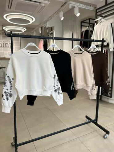 - Klasični duksevi sa floralnim detaljima: okrugli izrez, dugi rukavi, elastične ranfle na rukavima i struku. Sitni cvetni/dekorativni vez/print raspoređen po ramenima i rukavima. Boje: crna, bela, maslinasto zelena, siva; drugi set u beloj, crnoj, bež i tamno braon.