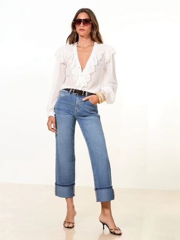 Elegantne i moderne farmerke koje ističu figuru, sa urednim krojem i prepoznatljivim podvrnutim rubovima za trendi završnicu..