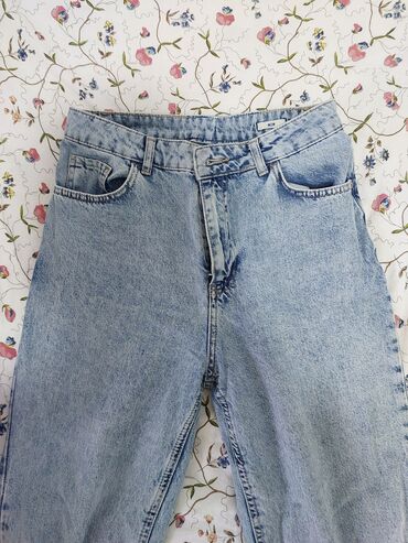 Ženske džins pantalone – širok/kombinezonski kroj - Materijal: lagan teksas (denim), prijatan za toplo vreme - Boja: srednje plava sa blagim ispranim efektom - Visina struka: srednji struk - Kroj ...