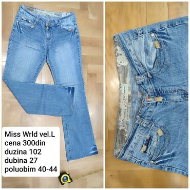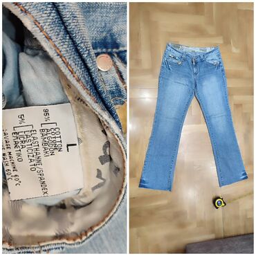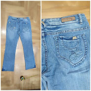 - Detalji: pet džepova, ukrasni šavovi i metalni nitne, brendirana etiketa u pojasu, izvezeni detalj na zadnjem džepu