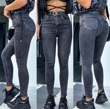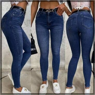 - Modeli: skinny/uz nogu, visok struk, klasični džepovi napred i pozadi