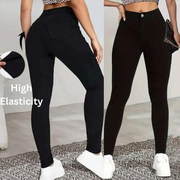 - Materijal: jeans sa visokim udelom elastina – mekane, rastegljive, prijanjaju uz figuru i zadržavaju oblik
