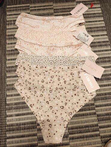 PamukKomplet od 6 ženskih gaćica u bež tonovima, sa različitim dezenima. Svi dezeni su inspirisani životinjskim šarama, uključujući zebrasti, leopard, sitne tačkice i srca, što ih čini raznovrsnim i modernim. Izrađene su od mekog materijala za udobnost tokom celog dana, idealne za svakodnevno nošenje. Svaki par ima „Famoso“ etiketu.