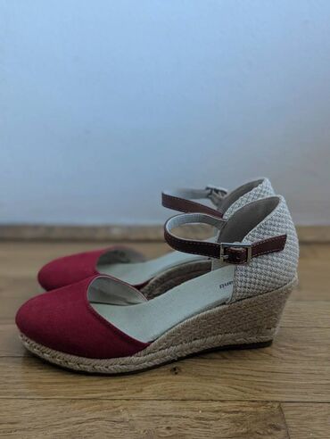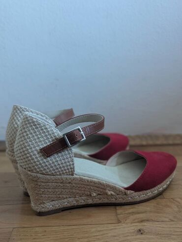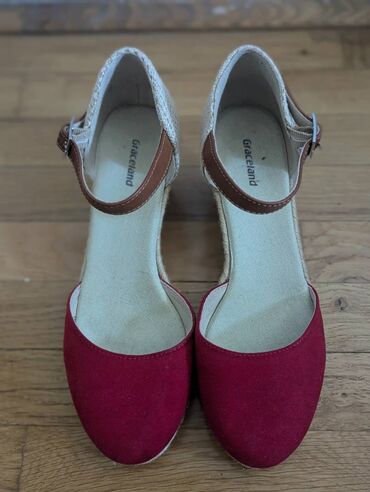 O trošku kupcaPokupiti na licu mestaŽenske sandale na petu marke Graceland, upečatljive crvene boje sa đonom od jute. Dizajnirane su sa zatvorenim prstima i podesivim kaišom oko članka za sigurno prianjanje, dok teksturisani materijal na peti pruža dodatni stil. Idealne su za svakodnevno nošenje ili specijalne prilike.