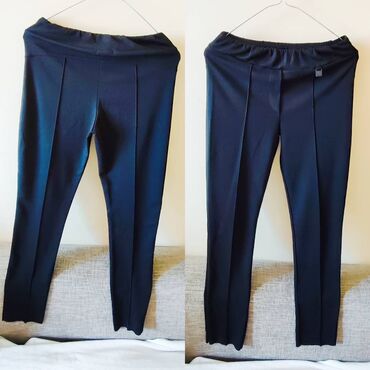 Ženske pantalone – teksas izgled, model kao helanke. - Veličina: 40 - Dužina: 108 cm - Poluobim struka: 33–40 cm (elastično) - Dubina: 27 i 31 cm - Kroj: blago zvonasti nogavice, elastični struk b...