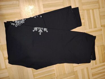 Boja: crna sa kontrastnim vezom. Udoban kroj, naglašena silueta, efektan detalj na nogavicama.