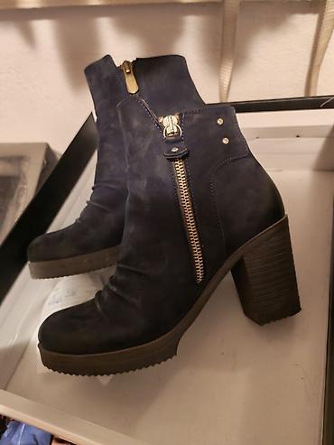 - Materijal: prirodna koža (nubuk/brušena koža) u tamnoplavoj boji