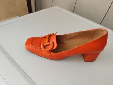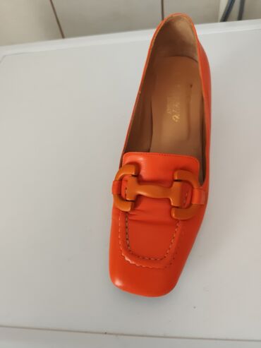 KožaŽenske kožne cipele u jarko narandžastoj boji, loafer stil sa kvadratnim vrhom i dekorativnom kopčom u tonu. Srednje visoka, stabilna blok peta (oko 4–5 cm) pruža udobnost za celodnevno nošenje. Gornjište od glatke kože, kožna postava i mekano uloško ležište. Šavovi naglašeni koncem u kontrastnoj nijansi za dodatni detalj. Elegantne i istovremeno praktične – idealne za kancelariju, svečane prilike ili svakodnevnu kombinaciju sa pantalonama, suknjom ili haljinom. Boja: narandžasta sa mat kopčom u sličnoj nijansi. Stil: klasični loafer na petu. Materijal: prirodna koža, gumeni đon.