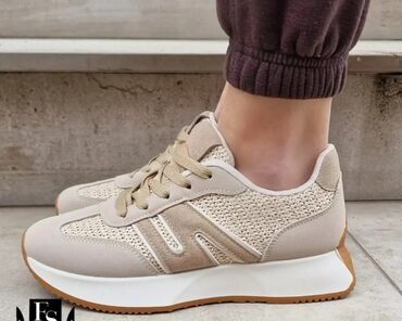 Patike neutralne bež boje, idealne za svakodnevno nošenje. Gornjište je kombinacija mrežastog materijala i brušene kože, pružajući udobnost i prozračnost. Debeli beli đon osigurava stabilnost i komfor, dok braon gumeni gazeći sloj obezbeđuje dobro prijanjanje. Savršene za šetnje, urbane aktivnosti ili ležerne izlaske. Dizajn sa pertlama omogućava sigurno prianjanje.