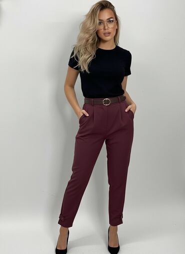 Ženske pantalone sa visokim strukom i pojasom na vezivanje - Model: slim/peg legs, sužene nogavice - Struk: visoki, sa naborima (paperbag efekat) i širokim pojasom koji se vezuje napred u mašnu ...