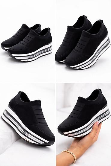 Ženske patike na platformu – crne - Dizajn bez pertli: elastične