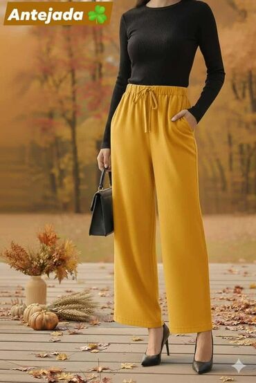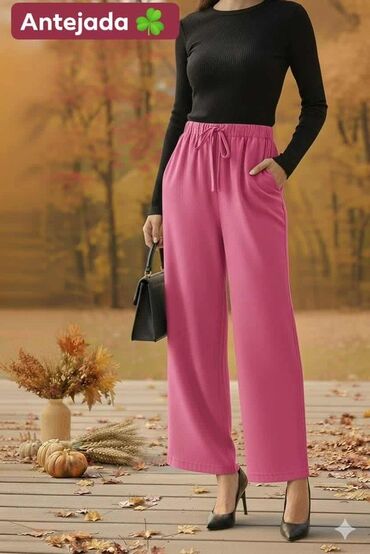 Akcija 2 pantalone po ceni jedne! 2 kom pantalona za 2200din✅ ✅L-4xl ✅Pamuk ✅Ženske široke pantalone – model sa visokim strukom i vezicom