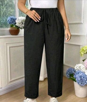 Ženske ravne pantalone sa širokom nogavicom - Model: ležerne, ravne pantalone visokog struka - Struk: elastična pasica sa učkurom/pertlom za dodatno podešavanje - Kroj: široke nogavice, opušten fi...