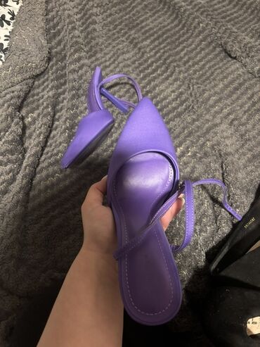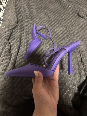 Elegantne ljubičaste salonke sa tankim kaiševima koji se m oko zgloba. Ove cipele imaju špicasti vrh i tanku štiklu, broj 36, jednom nose e