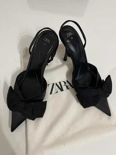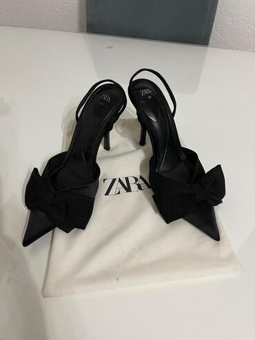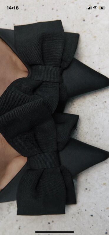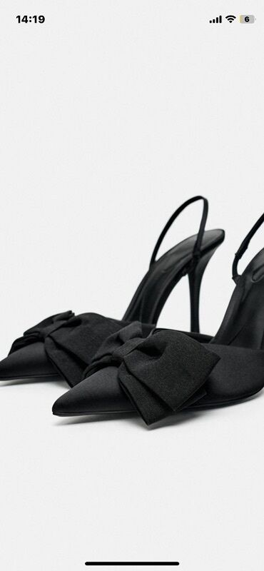 Dve elegantne ženske salonke – set 1) Crne peep-toe salonke sa visokom štiklom - Materijal: prirodna koža (označeno „KOŽA“ na ulošku) - Prednji deo otvoren (peep-toe) sa dekorativnom mašnom/naboro...