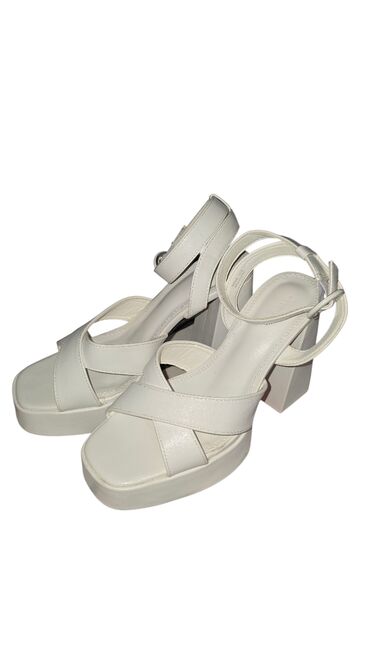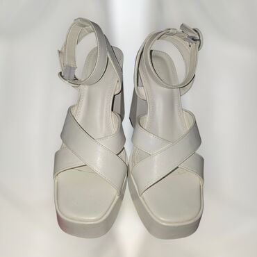 - Model: otvorene sandale sa platformom i visokom, širokom (blok) štiklom, podsećaju na stil '80ih