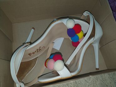 Potpuno nove sandale, broj 37. Veštački materijal. Visina štikle 8 cm.