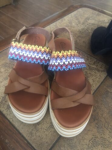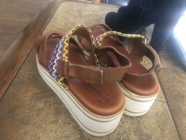 Sandale, 37, (23.5 gazišta) dvaput obuvene,koža. Potpetica 7.5 , platforma 2.5