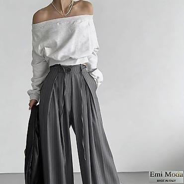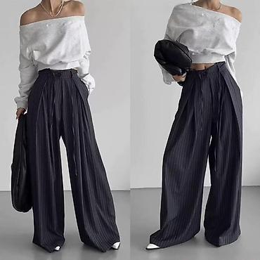 Ženske široke pantalone sa preklopom i prugama 2500 din