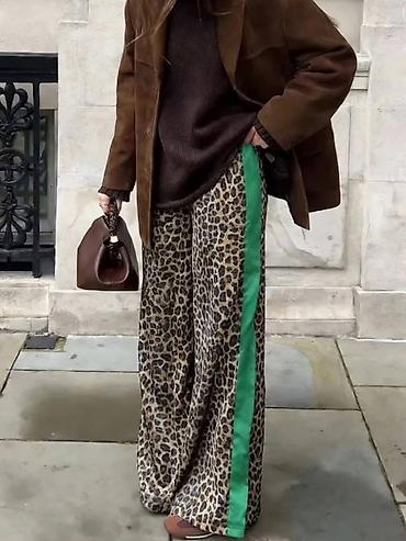 🔥Ženske široke pantalone sa animal printom i bočnom kontrastnom trakom