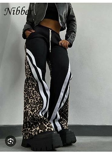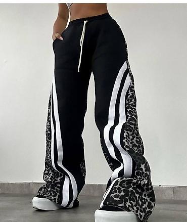 Hit 🍀 Ženske široke trenerke sa printom pasa - Model: široke nogavice, opušten kroj - Struk: elastični pojas sa učkurom za podešavanje - Džepovi: bočni, diskretni - Materijal: mekana, glatka pamuč...