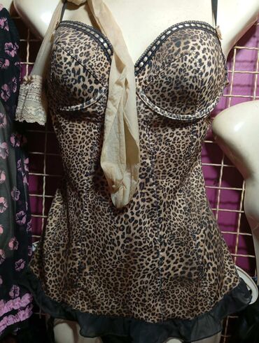 - Model 3: Korzet‑haljinica sa leopard printom. Čvršće korpice, dekorativno prošivanje po panelima za naglašenu siluetu, crni mrežasti porub sa blagim naborima.